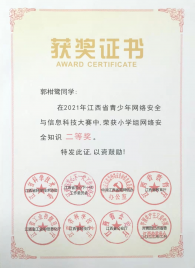 喜報 !我校在江西省2021年青少年網絡安全與信息科技大賽中榮獲“小