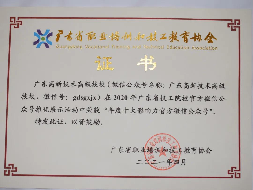 ★廣東省高新技術(shù)高級(jí)技工學(xué)校官方微信(微信號(hào):gdgxjx)被評(píng)為“年度十大影響力官方微信公眾號(hào)”...