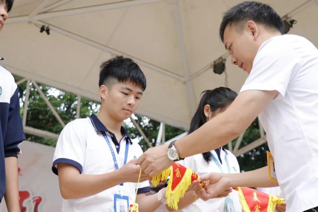 ▲學(xué)生科科長鐘維林與優(yōu)秀宿舍優(yōu)秀班級(jí)代表合影
