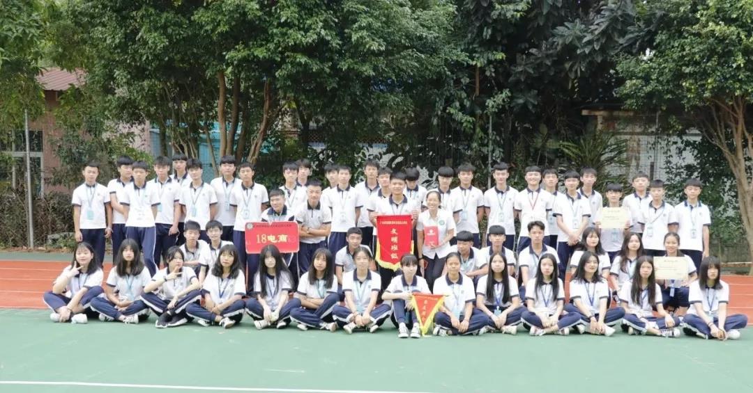 18烹飪2班主任郭鵬鵬老師、18烹飪1班主任李太燕老師、18烹飪5班主任阮順梅老師與領(lǐng)獎(jiǎng)班級(jí)代表合影