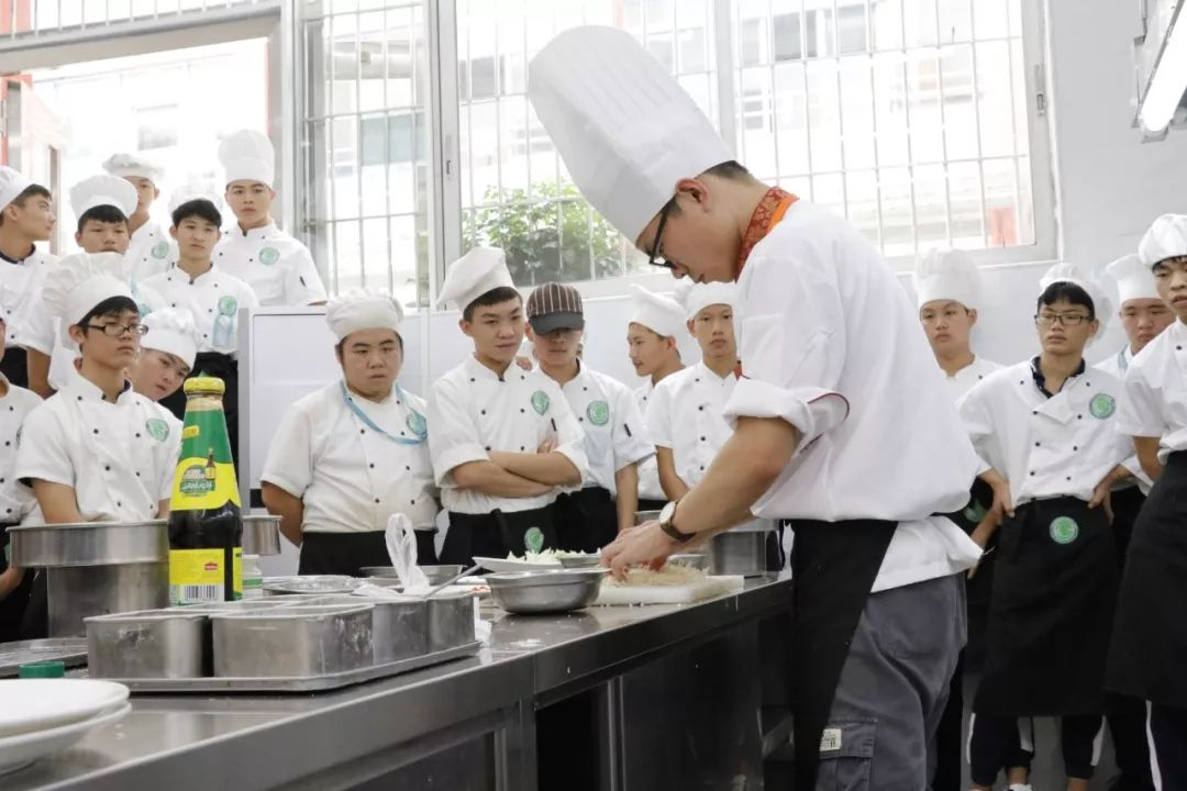 相對于還在學(xué)顛鍋,練刀工雕工,揣摩時間火候的同學(xué)來說,烹飪老師們之間的PK就可以說是「神仙打架」,同學(xué)們唯一的「勸架」方式就是好好看,好好學(xué),別開小差。看老師們認真專注的樣子,收放自如的操作以及比平時放大十倍的氣場,就知道什么叫專業(yè),這里面包含的是一種十足的自信,以及唯美食不能辜負的「態(tài)·度」。