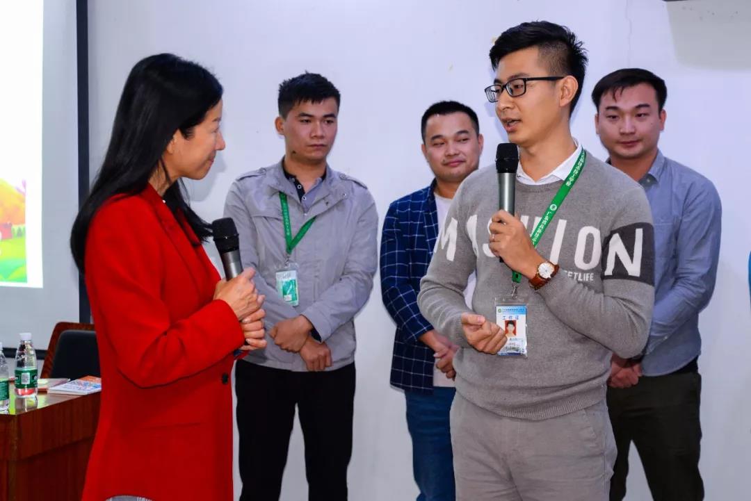 通過“開門”、“關門”、“遞物”等模擬場景,萬老師列舉了一個又一個實例,并邀請現場觀眾:學生處處長曾成、經貿系主任姚幸連上臺擔任不同角色,形象生動地闡述了禮儀在不同場合的重要作用,號召大家在日常生活學習中的言談舉止,從每一個細節入手。
