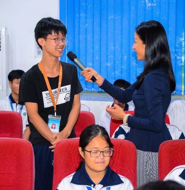 萬老師談到剛一踏入高新校園,就感受到師生們的熱情,在校園里,處處可以聽到我校學生一聲聲禮貌的問候“老師好、師兄師姐好、叔叔好、阿姨好…”,這暖心的語言在校園里傳播了正能量,體現了我校學生良好的精神風貌。