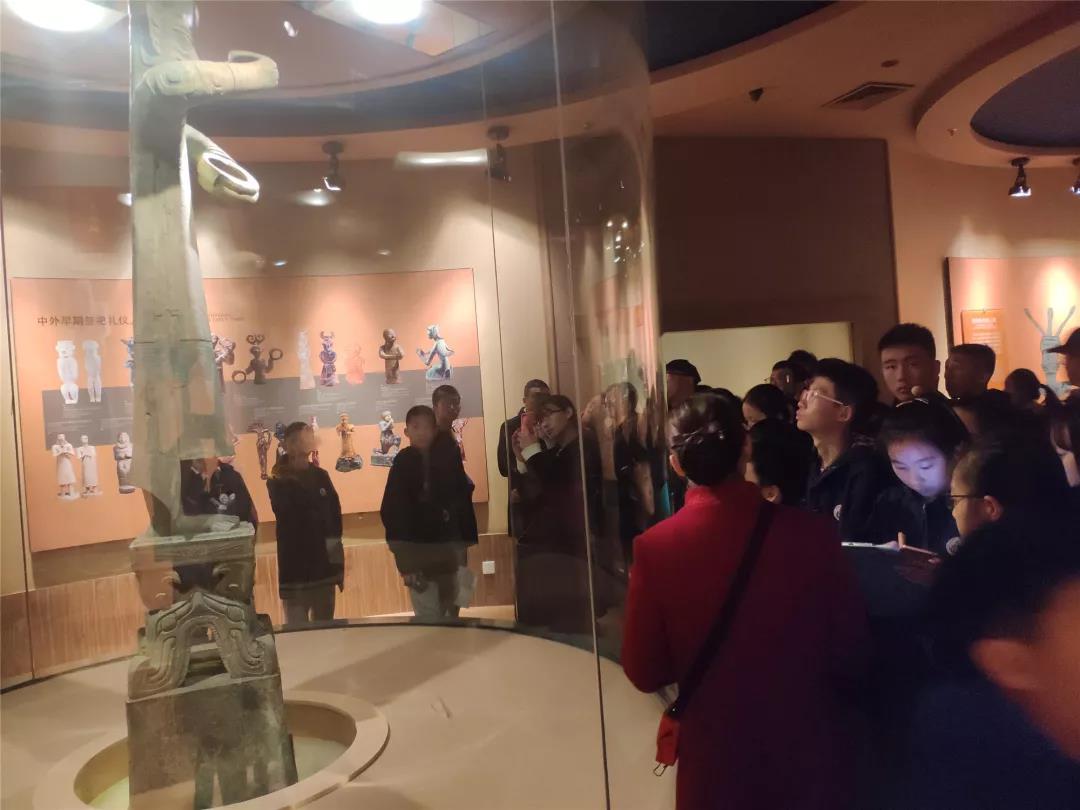 在解說員的講解下,同學們積極提問、認真聆聽、仔細記錄。一件件珍貴文物展現在同學們眼前,讓人無不贊嘆古蜀人民勤勞智慧,尤其是在沒有發達的機械情況下,僅憑雙手打磨的玉石器物和那鎮館之寶青銅神樹!連隨行的老師都說,“連我也想研究研究古蜀文明啦!”