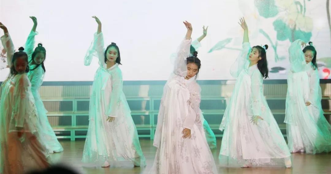 “飄然轉(zhuǎn)旋回雪輕,嫣然縱送游龍?bào)@。”中國舞班的孩子舞姿輕盈,廣袖輕曳,時(shí)而飄飄若流風(fēng)雪回,時(shí)而疾速如游龍受驚。