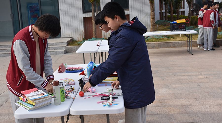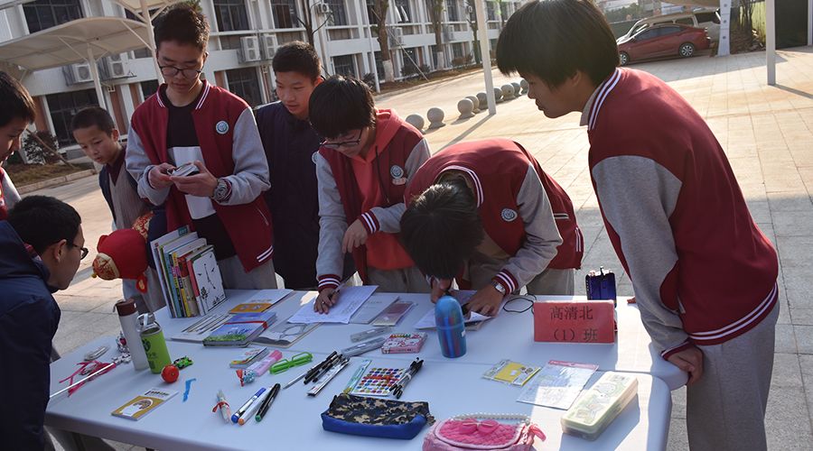 1月5日下午3:30,學(xué)部各班級(jí)同學(xué)就迅速行動(dòng)起來,將精心準(zhǔn)備好的義賣物品、橫幅、銷售裝備等拿到攤位。各班級(jí)快速有序的將自家“超市”布置完畢,校園瞬間被點(diǎn)燃,集市人山人海。每家“超市”都別出心裁的通過標(biāo)語、口號(hào)展示自家店鋪的特色。