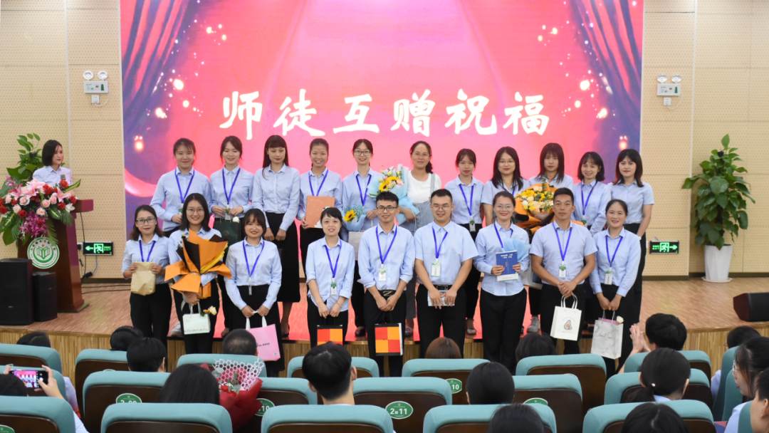 隨后,鐘小娟校長(zhǎng)、簡(jiǎn)東英校長(zhǎng)為師傅們頒發(fā)了聘書。