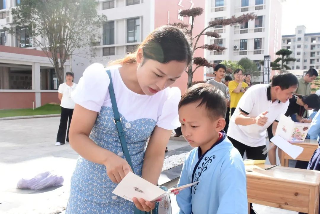 碧空如洗,秋高氣爽。為弘揚(yáng)中華傳統(tǒng)文化精神,9月16日上午,大余衡水實驗學(xué)校隆重舉行“開蒙啟智 習(xí)禮明德”一年級新生開筆禮儀式。大余衡水實驗學(xué)校校長王躍平,副校長彭艷華,小學(xué)部校長鐘小娟,校長助理簡東英,小學(xué)部教務(wù)主任謝林燕、副主任黃婷,以及一年級全體新生家長和老師共同見證了此次莊重的開筆禮儀式。