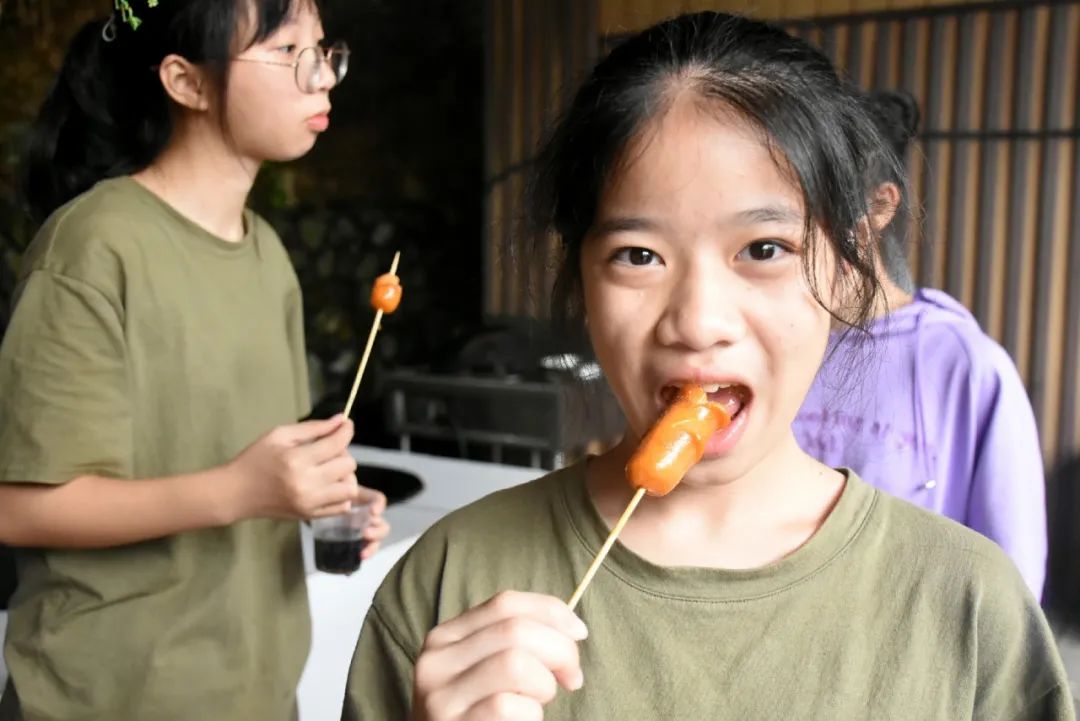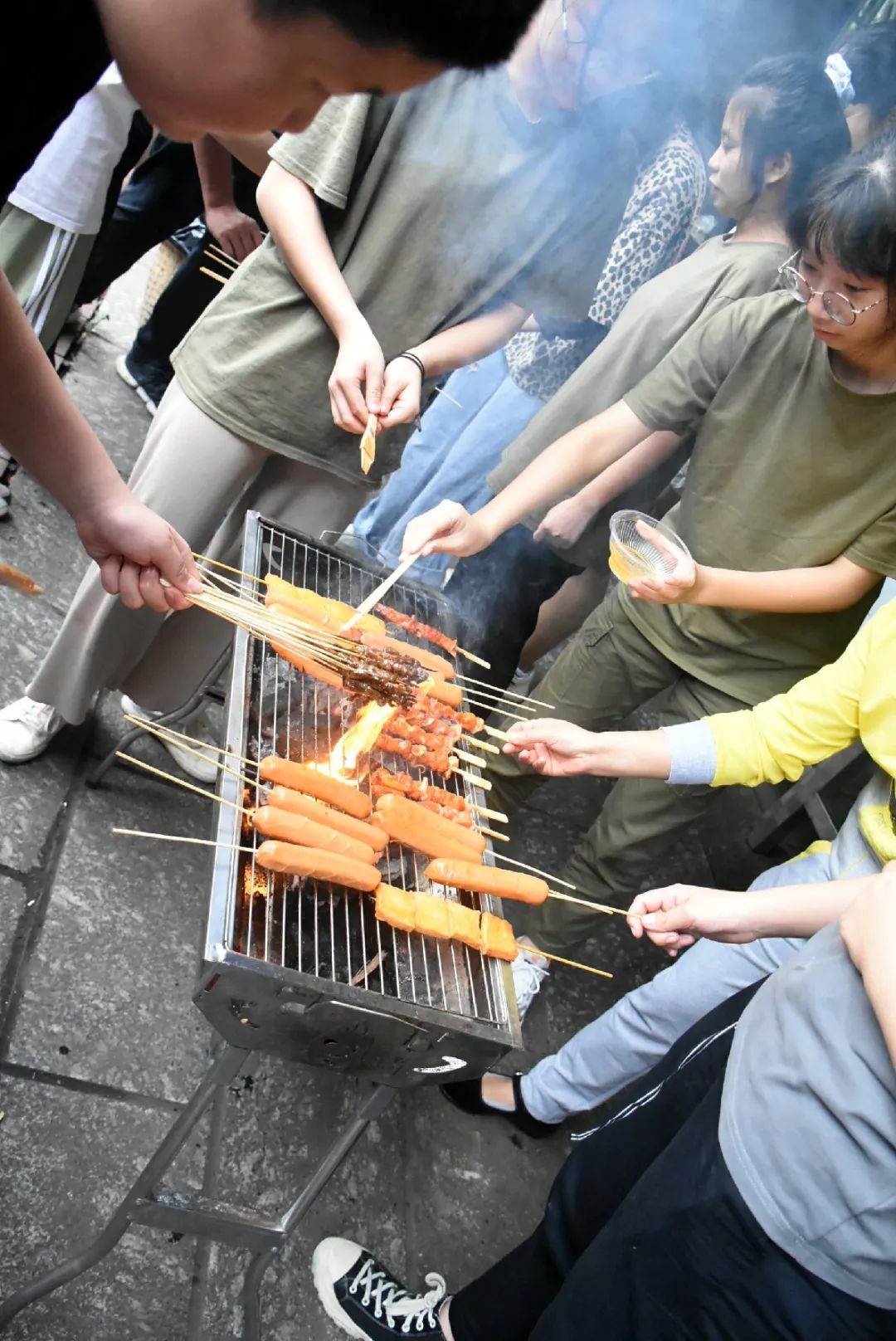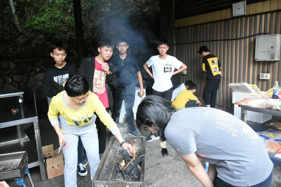 一串串肉被擺在烤架上,醬料被調配著,歡笑大鬧間,丫山下的我們是如此可愛,“大廚”翻著烤肉,平日不愛勞動的“大哥”這時也變得勤奮可靠,一直為大家烤食物,是“大廚”中的中流砥柱,老師們也檫拳磨掌,在燒烤一線奮戰。