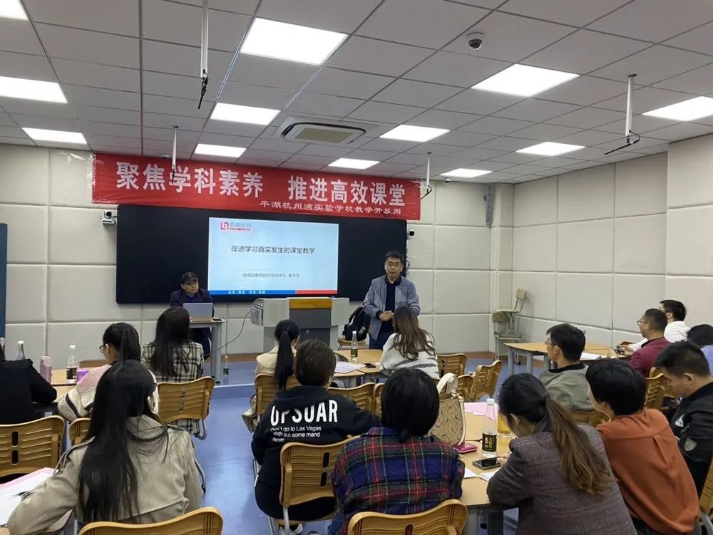中午,我們有幸請到嘉興市學科帶頭人、嘉興市南湖區教研員朱文平專家為我們做了題為《促進學習真實發生的課堂教學》微型報告。朱老師給我們指出,教學改革的核心是“改變教與學的關系”。“教是為了不教,教為了學;少教多學,變教為學”是教學改革的方向,我們應當基于學科特征、學習內容特征、學生學習特征選擇合適的學教方式,使學習方式多元化,從而學習行為多樣化,學生才能夠更好地獲得知識。