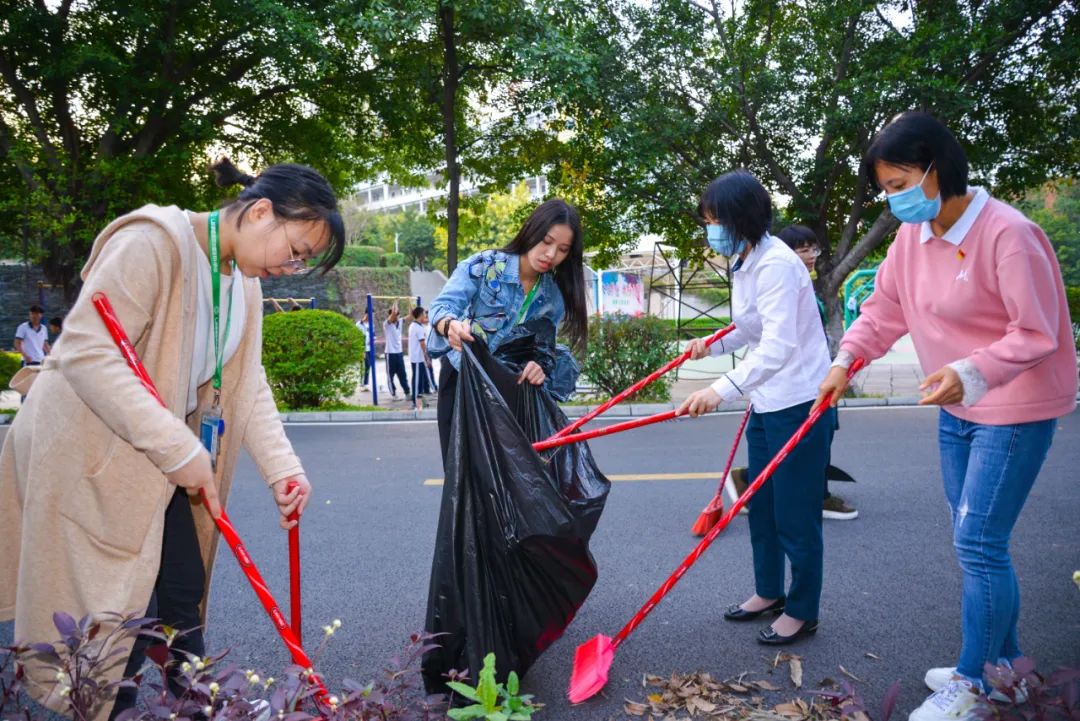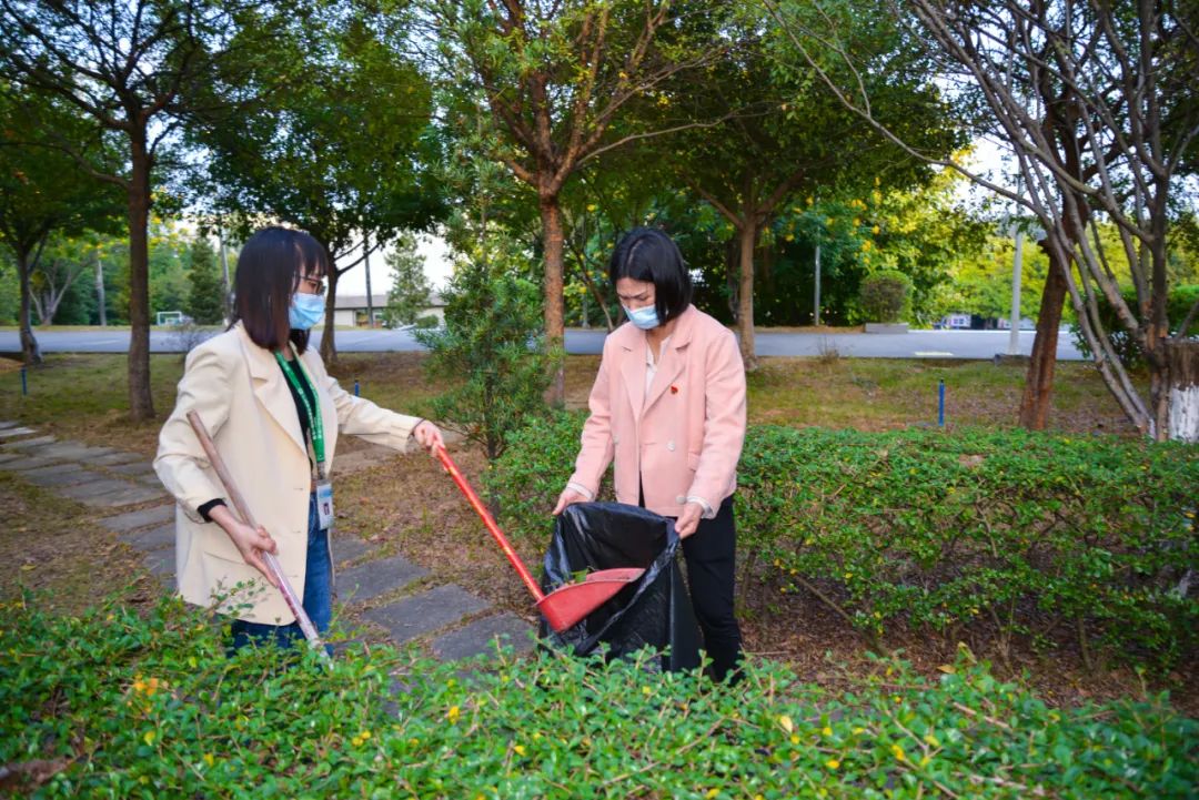 簽約儀式結(jié)束后,兩個(gè)黨支部全體黨員分成4個(gè)小組,聯(lián)合開展校園衛(wèi)生清潔活動(dòng)。