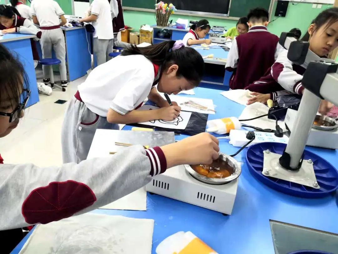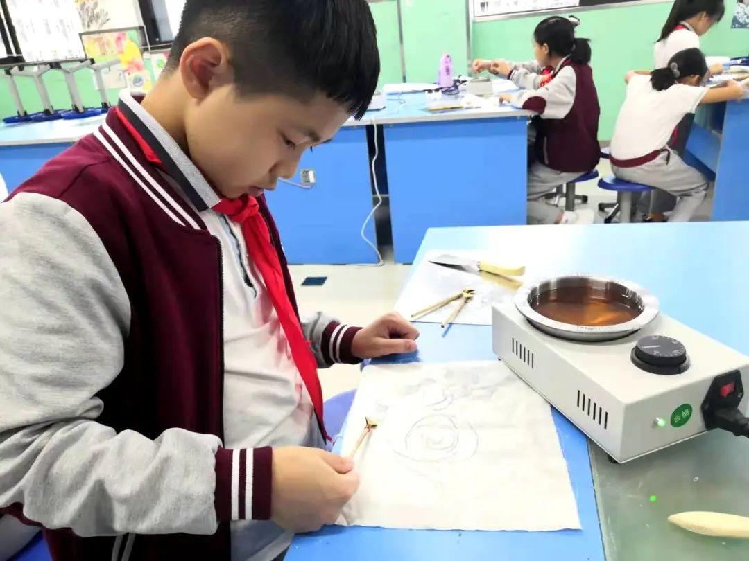 蠟染是用蠟刀蘸熔蠟繪花于布后以藍靛浸染,既染去蠟,布面就呈現出藍底白花或白底藍花的多種圖案。