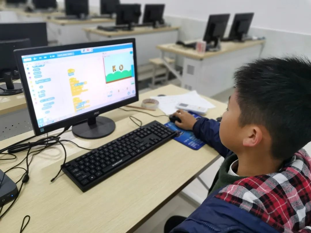 為了更好地提升學(xué)生的信息素養(yǎng),我校開設(shè)少兒編程大課堂,孩子們通過項(xiàng)目式開展和小組合作的方式,使用圖形化編程語言Scratch創(chuàng)作,理解順序、并行、重復(fù)結(jié)構(gòu)、偵測(cè)條件等計(jì)算思維中的重要基礎(chǔ)概念和算法知識(shí),既鍛煉了邏輯思維能力和創(chuàng)新能力,也增強(qiáng)了其不斷試錯(cuò)和解決問題的能力。