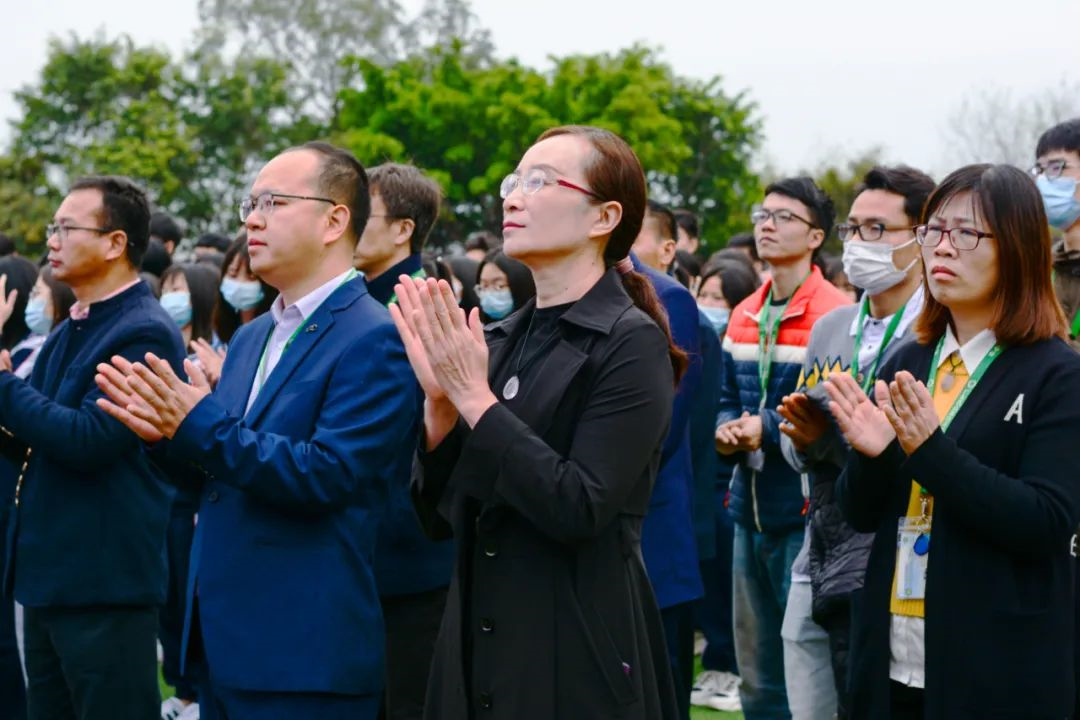 校長張天培、執行校長肖中圓、副校長張和平、副校長莫志鴻、校長助理孫建華、校長助理王則如等校領導,以及各系、相關職能部處的負責人出席典禮。行政人事處處長毛有考擔任主持,典禮在師生共唱國歌聲中開幕。